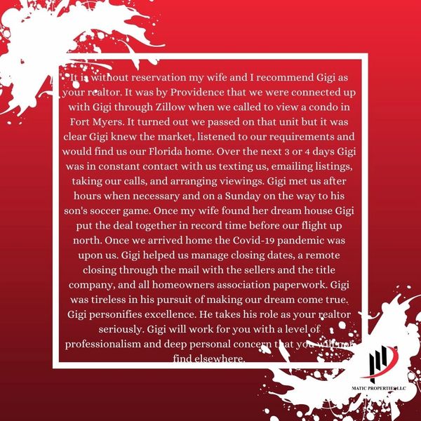 Gigi and Ermina Matic have been working in the Southwest Florida for over 20 years building an extensive clientele and expanding their knowledge on the area. Their expertise is guaranteed to help you find a place to call home that fits all of your wants and needs. Anybody can list your home, but not everybody can sell it. As real estate professionals, they are fully committed to assisting you in the buying and selling process and ensuring that the process leaves you satisfied for years to come.